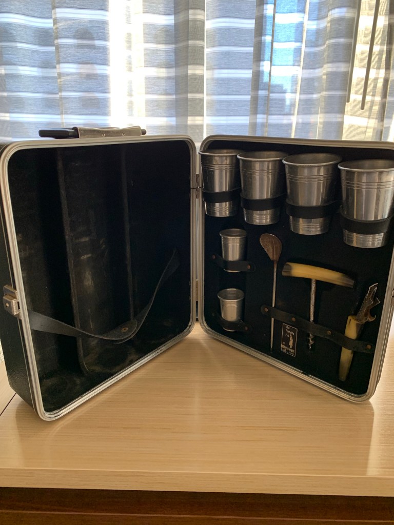 One item on tomorrow’s to do list includes stopping wherever one stops in AZ to outfit the Portable Bar, my Dad’s traveling buddy since the early 60s. This trip is about way more than just my birthday, and I’ve brought several elements to have my Mom and Dad with me every mile.