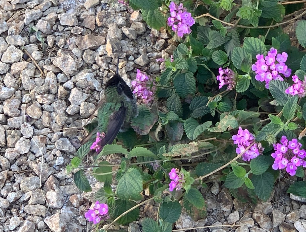 After bonding with my little hummingbird friend, I set off to visit the Ranch at the Oasis. It’s a very nice complex with shops and a couple of restaurants, and an outdoor museum for the Harmony Borax Works. A sign invited one to venture a little further up the road to visit the ruins on the actual site of the Borax refining operation…so I did.
