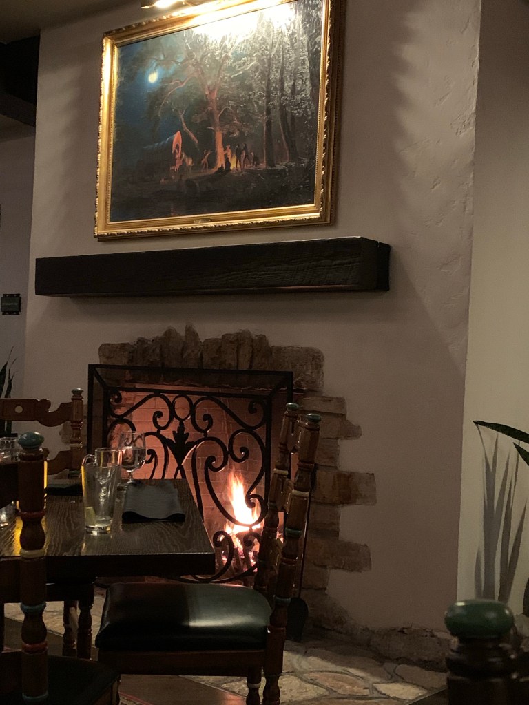 Splurged for dinner and ordered the ribeye. Enjoyed it next to the fireplace. Simply delightful.
